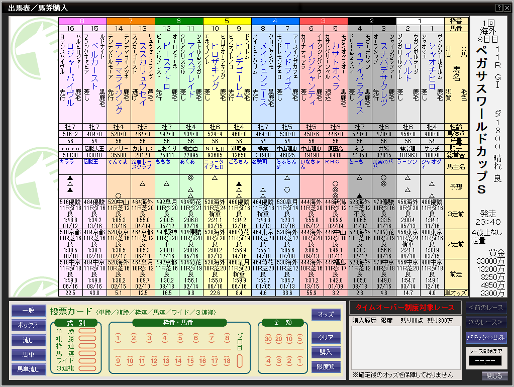 本当なら、ペガサスワールドカップSに出走登録をしていましたが、想定以上に出走数が増え、昨晩20時では16番目でした。そして、まだ、ヒロさんが登録していないので、これは除外確定を思い、急遽こちらの方に登録をしなおしました。