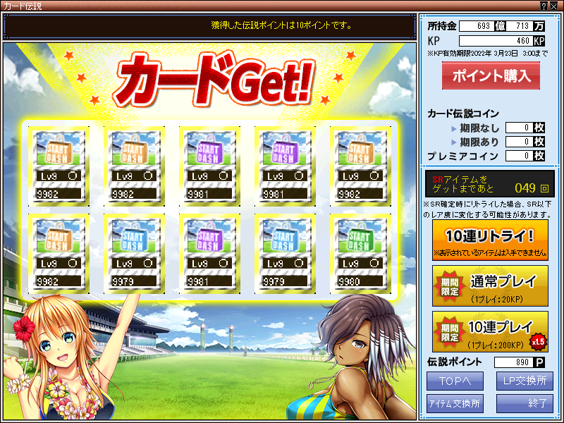 と、2日続けてSRがきました。それもスタートダッシュということと、レア3枚きたので、よかったです。