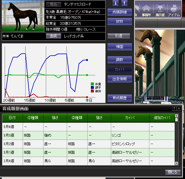 あ、もしかして、昨日古馬の調教をしていないかも・・・